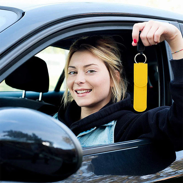 Portable Leather Pouch – Comes with a stylish yellow case for easy storage and travel convenience.