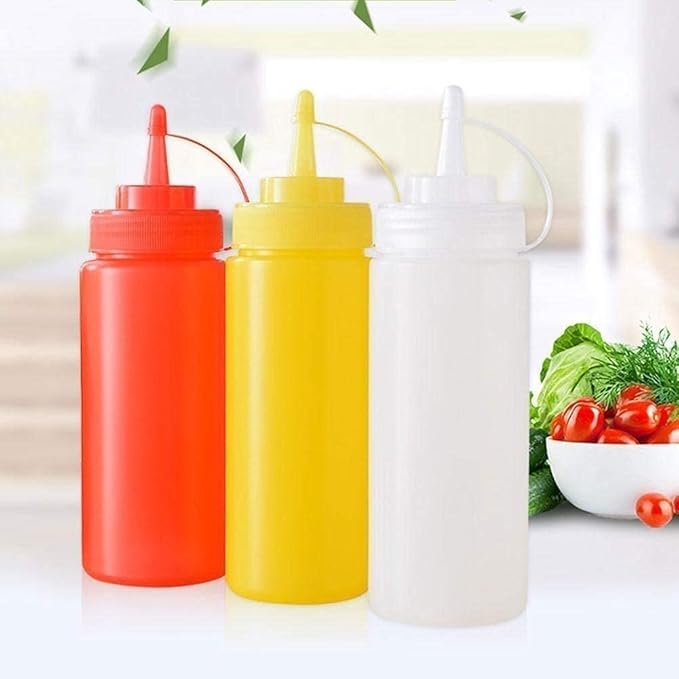 Pack of 3 Bottles – Comes in Red, Yellow, and White (Transparent) so you can easily organize ketchup, mustard, mayonnaise, or any sauce of your choice.